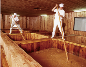 大徳醤油では四季の温度変化の中、蔵に棲みつく微生物の力をかりて、長期間発酵・熟成させる昔ながらの醤油づくりを創業以来100年以上続けています。